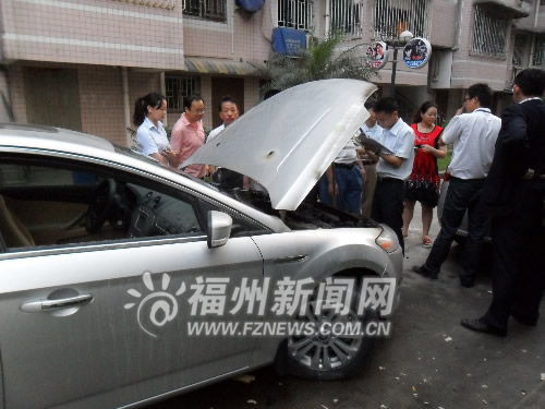 老何連忙從傳達室內拿出兩個滅火器, 對著引擎蓋一陣噴射。很快,滅火器空了,火苗仍不斷往外冒。老何又跑到附近的洗手間拿盆裝冷水,不料澆了10多盆,火仍沒有熄滅。