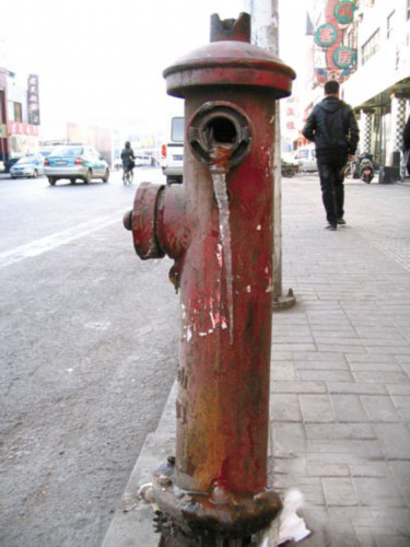 5.中意一路女子大學(xué)對(duì)面湘西部落人行道上,有個(gè)消防栓日夜流水。