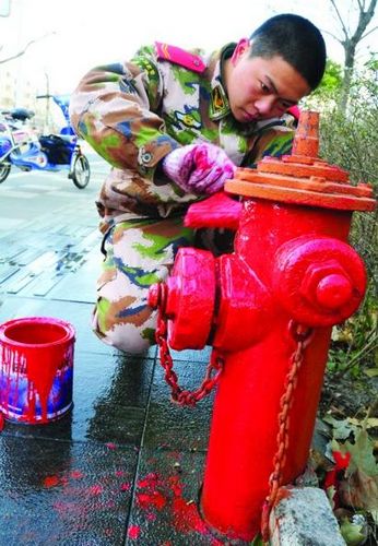 太倉市消防大隊(duì)?wèi)?zhàn)士著嚴(yán)寒為路邊的消火栓除銹、放銹水、打黃油、涂刷油漆。為了確保消火栓的牢固耐用,太倉市消防大隊(duì)每季度都要對(duì)全市2000多只消火栓進(jìn)行維護(hù)保養(yǎng),此次冬季保養(yǎng)維護(hù)從去年12月中旬開始,預(yù)計(jì)將于本月中旬完成。消防栓保養(yǎng)規(guī)程
