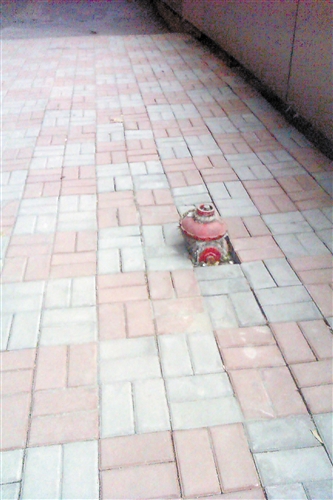 天津長(zhǎng)江道路旁一消火栓被埋在地磚之中..