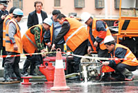 昨天(8日)下午,和平區(qū)榮安大街與建物大街交口附近的一消防栓跑水,導(dǎo)致道路上大量積水。自來水搶修人員經(jīng)過40分鐘的搶修,才將水止住。