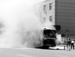 發(fā)現(xiàn)車輛起火后,車上的乘客驚慌失措,但在交警的協(xié)助和指揮下,很快有序疏散到安全地帶,沒有出現(xiàn)人員傷亡。此時,附近淶水縣供電公司的職工們聽到外面有人呼喊救火,紛紛拿起滅火器,打開消防栓。跑到街上,對著冒煙的發(fā)動機艙猛噴??h消防大隊人員接到火警電話后也立即趕赴現(xiàn)場,持續(xù)向起火的發(fā)動機艙部位噴水,將大火_撲滅。