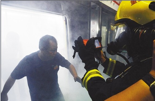 據(jù)了解,此次演習(xí)是市公安消防總隊(duì)針對(duì)地處地下層的地鐵站專門開展的一次滅火救援演習(xí)。演習(xí)假設(shè)的情況是:一列從沙坪壩開往朝天門的地鐵列車行至馬家?guī)r站和高廟村站區(qū)間時(shí),列車發(fā)生故障,第三節(jié)車廂突然著火,火勢(shì)迅速蔓延,車廂里共有100多名乘客。