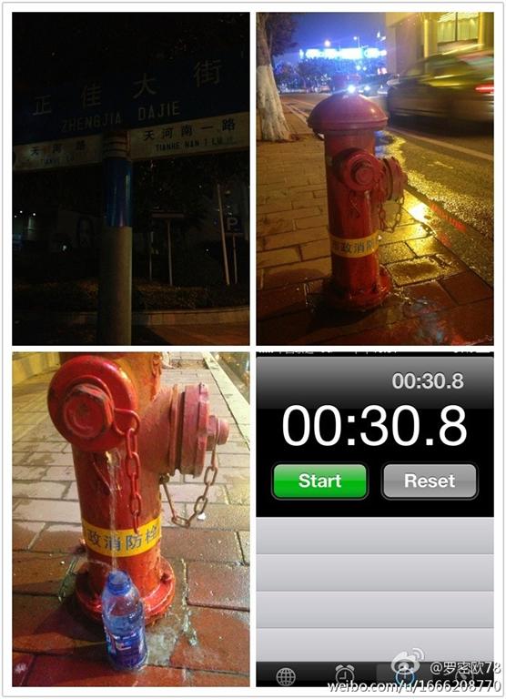廣州正佳大街,有一臺(tái)消火栓,_近10天一直在漏水,無(wú)人問津,今晚用能裝600ml的空瓶算每一分鐘有多水不見了。裝滿這瓶子只需要30秒、等于每一分鐘有一升的水這樣流失。10天之內(nèi)有14400升的水悄悄的流失了。怎么沒人管?。?/div>