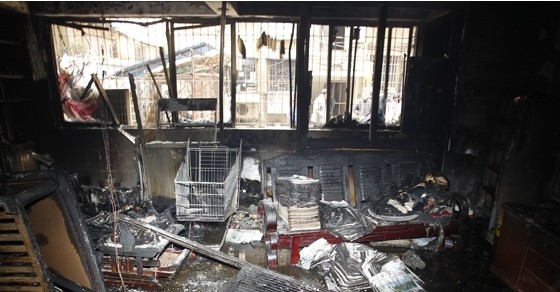 消防隊員接警后趕到現(xiàn)場,在樓下_能看到房間里的火舌。進入火場后,消防員發(fā)現(xiàn)著火的是客廳,老太太躺在客廳一張床上,已經(jīng)遇難。